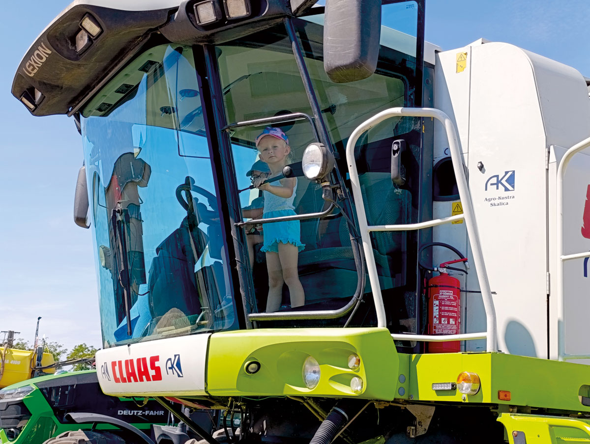V poobedných hodinách sa oslava presunula do priestorov družstva a priľahlého športového areálu. Už tradične nechýbal povoz z koňmi, ktorý vozil návštevníkov po areáli družstva, ktorý prešiel v posledných rokoch zásadnými zmenami. Nechýbala samozrejme poľnohospodárska technika – kombajny, traktory, sejačky, ktoré si deti v sprievode rodičov užili. Hlavná zábavná časť dožiniek sa odohrávala následne na ihrisku miestneho futbalového klubu, kde bolo pre nich pripravené občerstvenie aj zábava. Poľovníci pripravili divinový a hovädzí guláš, miestny klub dôchodcov napiekol koláče. Lokálny záhradkári zorganizovali ochutnávku vína.